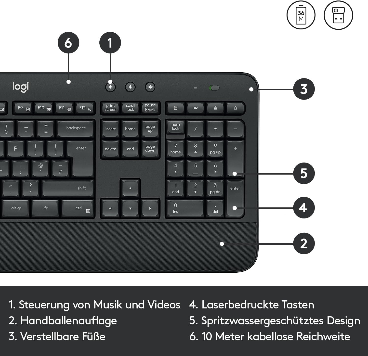 Das Logitech MK545 Advanced Set kombiniert Komfort, Langlebigkeit und kabellose Freiheit – ideal für den täglichen Einsatz.